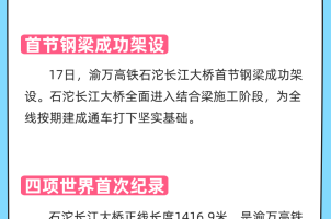 • 圖解|創(chuàng)下四個(gè)世界第一!渝萬高鐵石沱長(zhǎng)江大橋首節(jié)鋼梁成功架設(shè)
